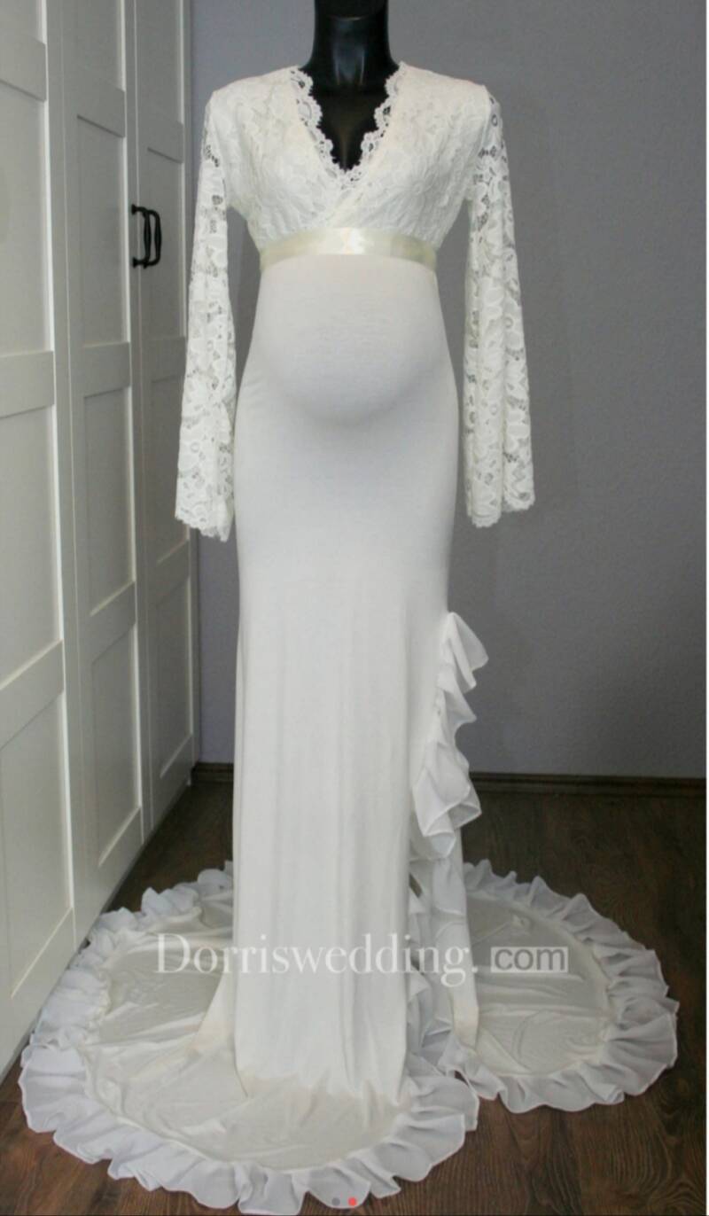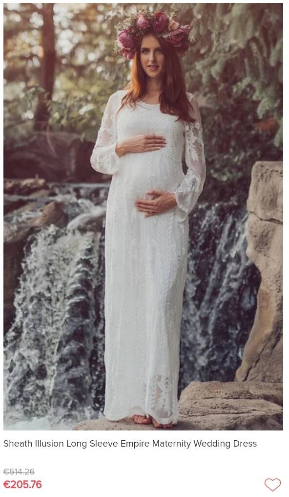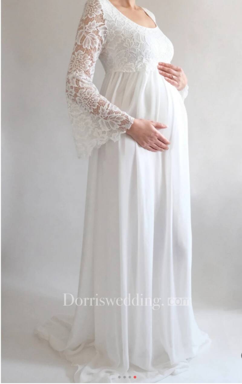 Je zou ook kunnen gaan voor een “gewone" Trouwjurk. Geschikte Silhouetten Trouwjurken voor als je zwanger bent zijn de A-Lijn en Empire Silhouetten. Deze Silhouetten knellen niet rond je buik en zijn gemaakt van lekkere soepele stoffen. Natuurlijk kun je ook voor b.v. een Zeemeermin Silhouet gaan. Dit Shilouet zit strak strak om het lijf, wat je buik accentueert, zorg er dan wel voor dat er veel stretch in de jurk zit.