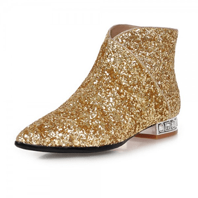 Gold Glitter Fashion Boots Pointy Toe Low Heel
