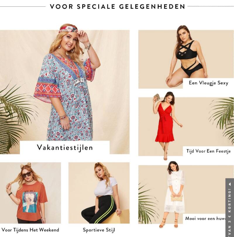 SHEIN biedt een zeer groot assortiment (Bohemian) Plus Size collectie aan; o.a. Maxi-Dresses, Mini-Dresses, Jumpsuits, Blouses, Tops, Broeken, Rokken, Bikini's, Badpakken, Tankini's, Kimono's, Lingerie en nog veel meer. Super trendy mode voor zeer betaalbare prijzen. Een aanrader om eens lekker voor te gaan zitten en je te laten inspireren!