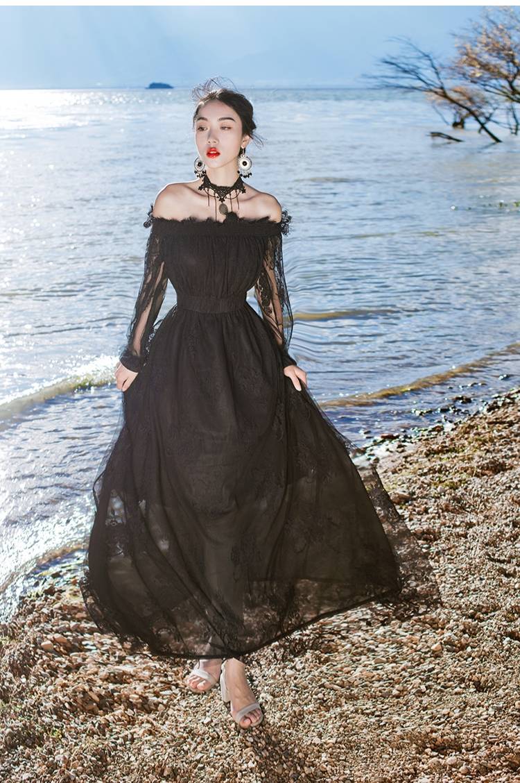 B| Chicloth Lace V-neck Flared Backless Two Pieces Maxi Dress