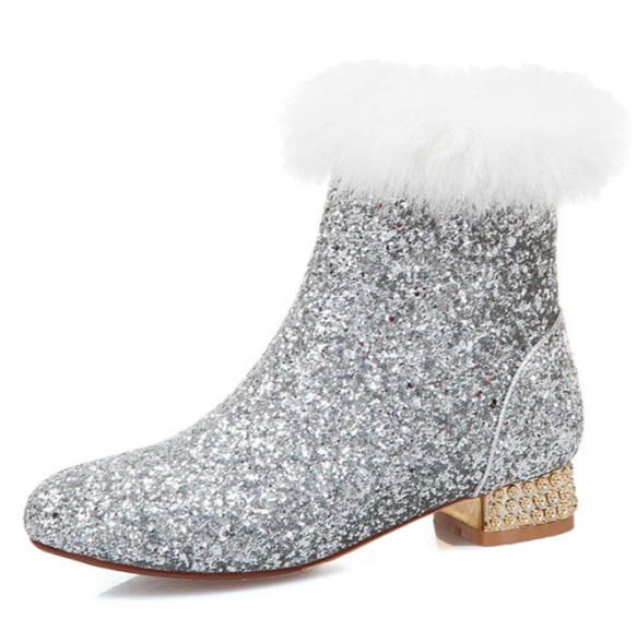 Winter casual glitter ankle boots, pink ,sliver, gold