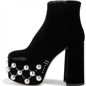 Black Platform Boots Silver Studs Chunky Heel Ankle Boots