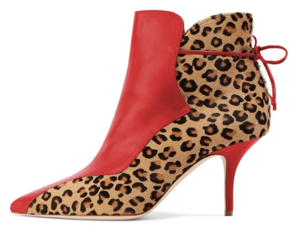 Red and Leopard Booties Pointy Toe Back Lace up Haircalf Ankle Boots