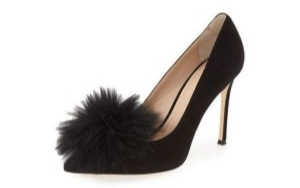 Black Pom Pom Shoes Pointy Toe Stiletto Heel Suede Pumps