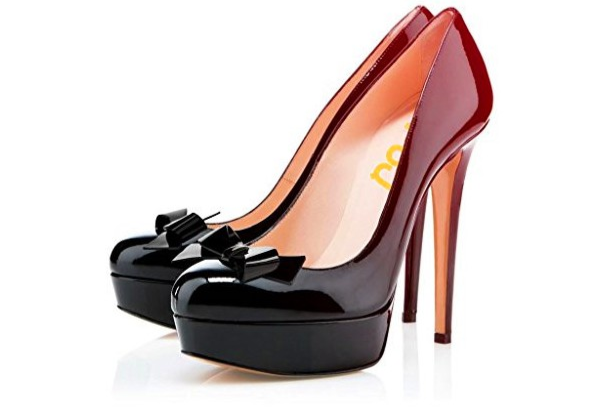 Black and Red Gradient Color Platform Patent Leather Pumps