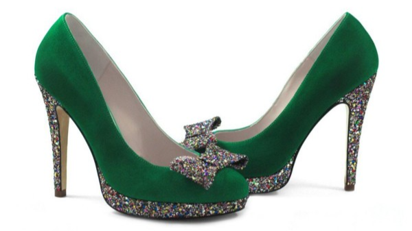Green Glitter Platform Stiletto Heels Pumps with Bow