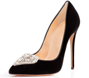 Black Velvet Heels Pointy Toe Stiletto Heels Rhinestone Pumps