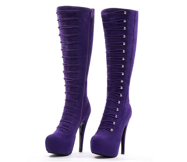 Purple Suede Fashion Boots Agraffe Platform High Heel Knee Boots