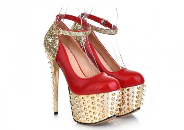 Red and Gold Heels Glitter Rivets Stiletto Heels